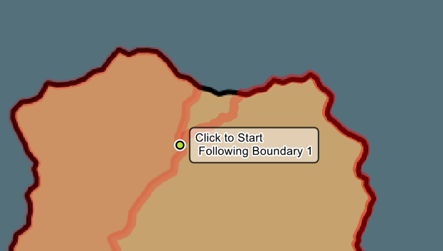 I want to create multiple boundaries on one landmass, but the tool doesn't switch from the landmass to another boundary.